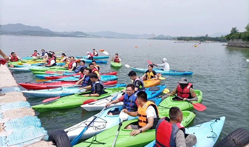 來到雪野湖的第一個游玩項目是“水上皮劃艇”,劃一艘小艇劈波斬浪,享受美麗的自然風光,大家都對于這個項目十分感興趣,興致勃勃地想要挑戰(zhàn)自己。很多同事都勇敢的突破自己, 體驗了一把“水上行走”,這種敢為人先,勇于突破的精神也正是鼎點企業(yè)一直秉持的信念。
